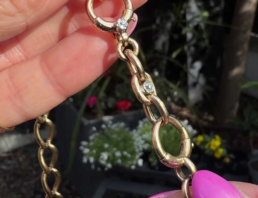 Antique Double Diamond Oval Extender with Diamond Bolt Ring, 18ct Gold | Lucille London